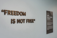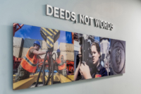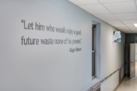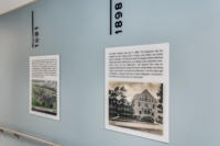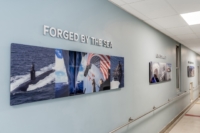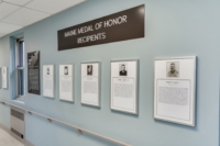 Feature Wall Exhibits: The connecting corridor’s long stretches of empty walls contributed to it’s maze-like experience. Adding inspirational and informative exhibits along the path creates memorable landmarks as well as institutional pride. The list of exhibits includes a timeline history of the facility, medal of honor recipients, military branch graphics, and history of the Kennebec Central Railroad.